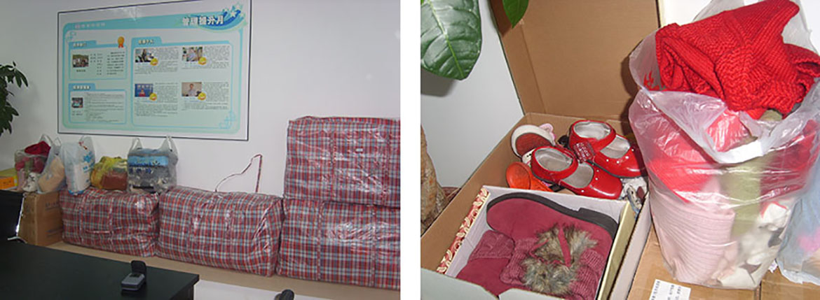 今年我們將繼續發揚愛心,由公司工會組織了“衣舊溫暖”的募捐活動。本次活動開展了近兩周的時間,此次募集到的衣服、褲子、裙子、帽子、圍巾、鞋子等共計218件。活動通知一出,咱們的員工第二天就帶了很多的棉襖大衣、棉鞋過來,看到大家的熱情和關愛,我要真心地說聲謝謝,謝謝大家伸出溫暖的雙手。我想不僅僅我的心里覺得溫暖,當那些人們收到我們寄去的這些東西時,我想他們也會感受到一絲暖意的。